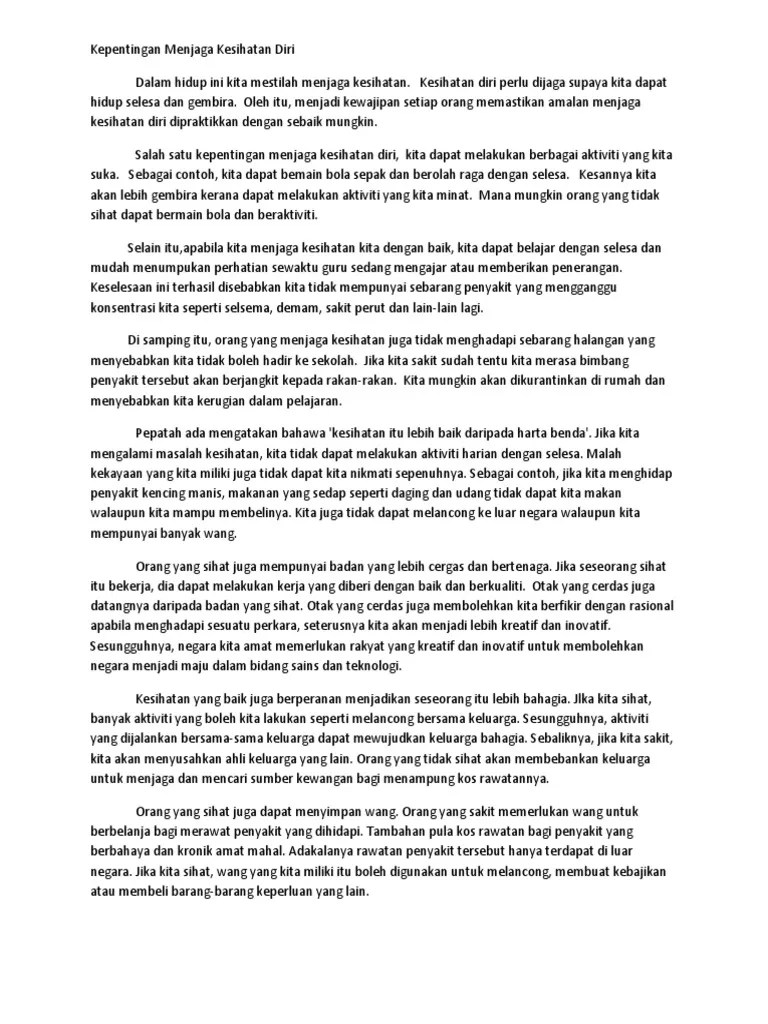 Mar 26, 2020 · berikut adalah contoh karangan kepentingan menjaga kesihatan dan kebersihan diri untuk panduan pelajar.